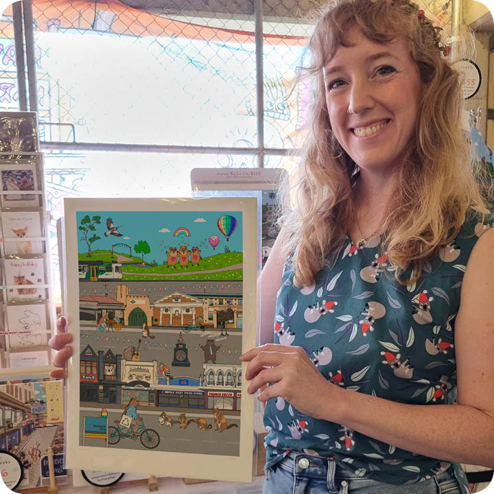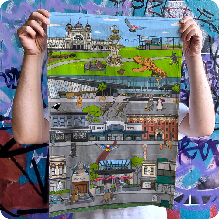 Melbournian Mammals comes to the ‘burbs! Each piece a celebration of our awesome communities, crafted with love, and a sprinkling of Aussie animals. Three of our favourite northern suburbs are now available to purchase on tea towels and prints: Carlton, Brunswick and Coburg! The perfect locally crafted gift, featuring your favourite local hotspots.