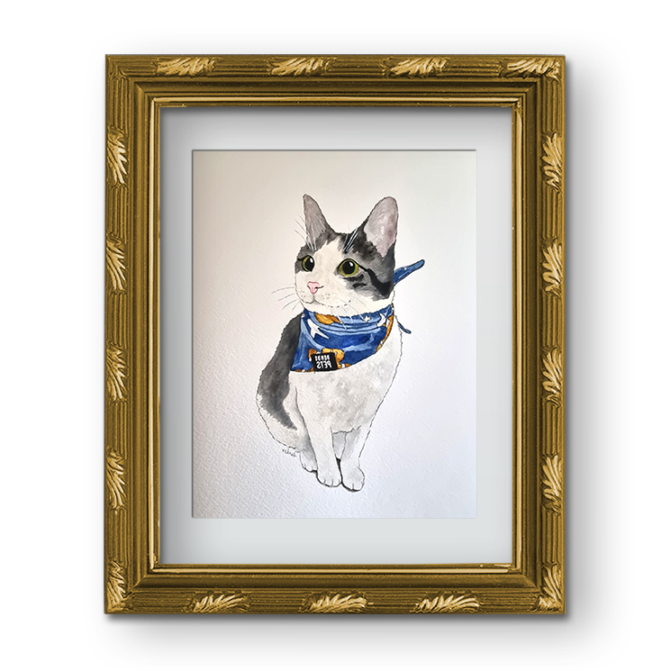 You can now order a digital gift card to gift a pet portrait directly, so the recipient can select the exact image they would like painted. Currently this is only open to A4 Recreation Watercolour Pet Portraits. Purchase one here.