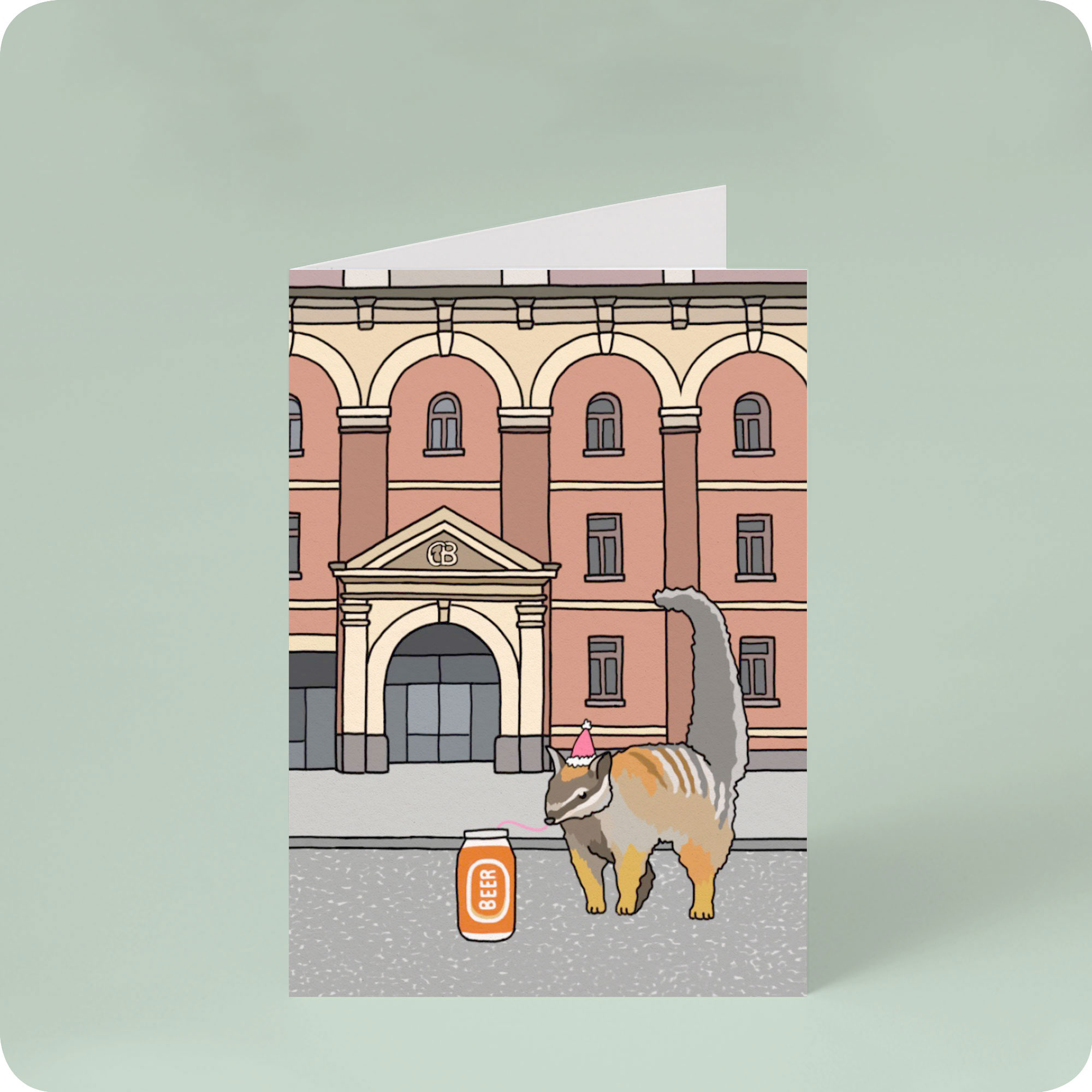This card features a cheeky numbat outside Melbourne’s historic Carlton Brewery site, wearing a Christmas hat and dipping its long tongue into a frothy Carlton Draught. It’s a playful nod to Melbourne’s brewing history, with a dash of Australiana charm that’ll bring a smile to anyone’s face – local or otherwise.